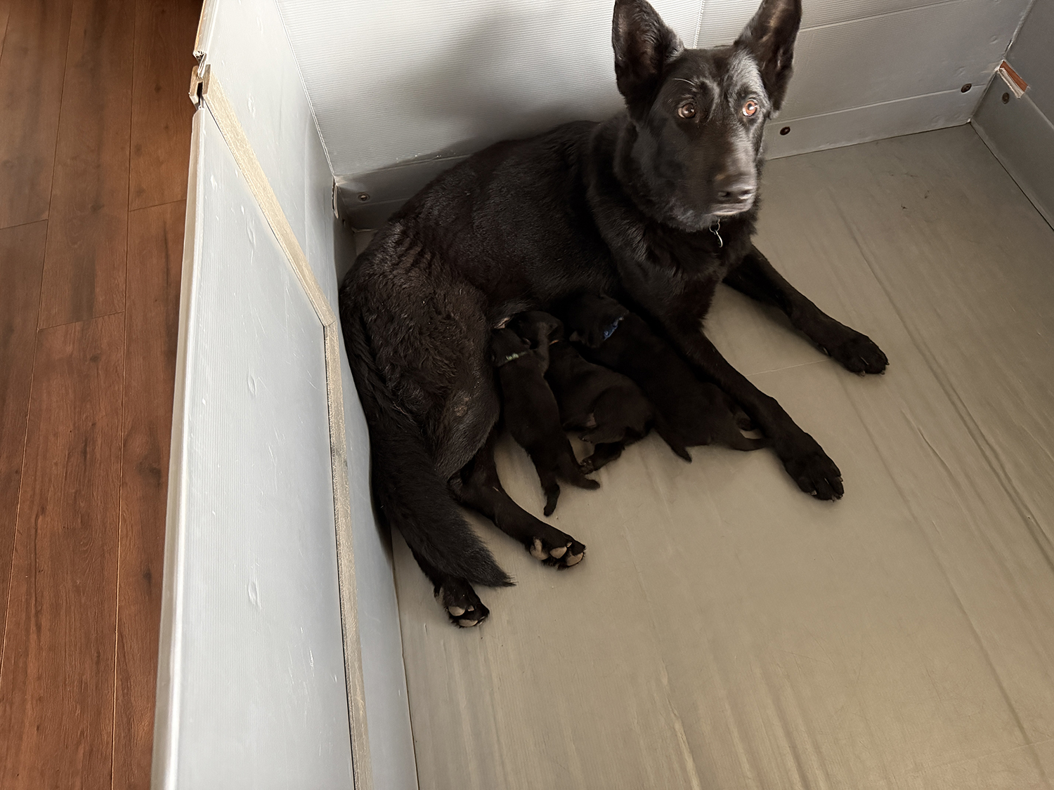 On February 10, 2026, Shadow proudly welcomed three beautiful puppies into the world, sired by Midnight.